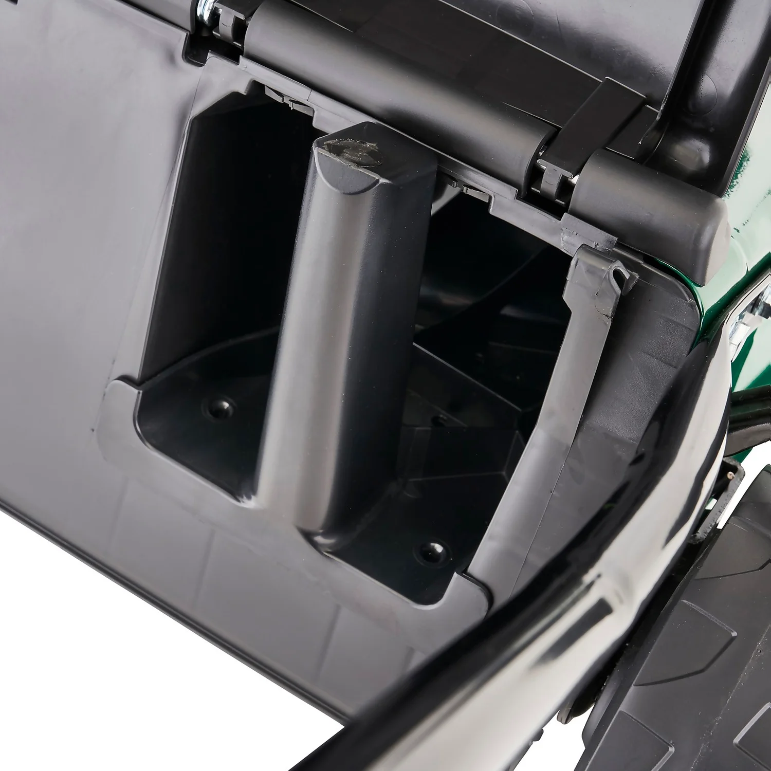 To save time and to add nutrients to your lawn, simply fit the mulching plug (supplied with the mower) and as you mow, clippings are finely cut and redistributed back onto the lawn surface. With fold-down handles it is easy to move around the garden and store.