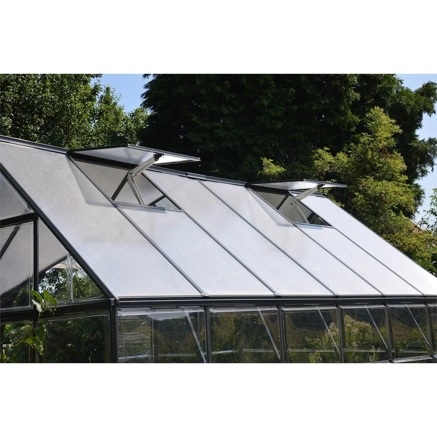 Extend your summer days and enjoy the warmth of the first sun rays. The gorgeous T-shaped spacious cathedral design of the Victory Orangery Chalet greenhouse makes it elegant enough for leisure activities during spring and autumn and roomy enough for all of your gardening projects year-round. Twin-wall roof panels protect from strong sunlight exposure and crystal-clear panel walls provide over 90% light transmission.