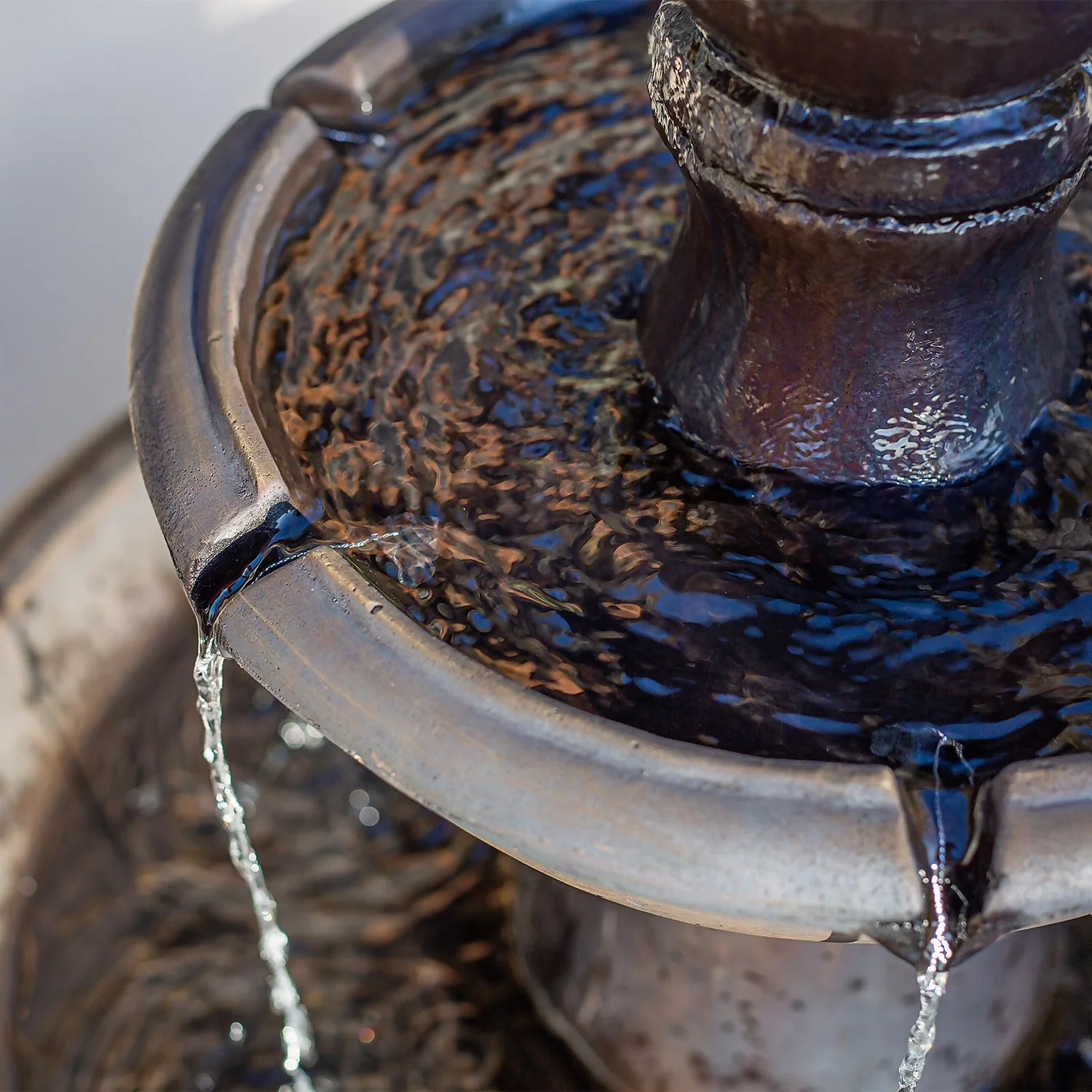- Self contained fountain with recirculating pump included